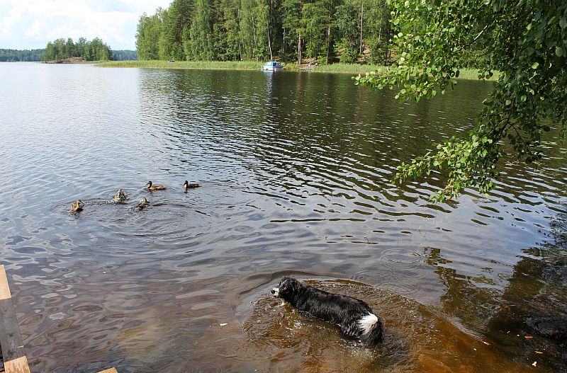 Kiitti! Aidaa ei paljon sorsat kiinnostaneet, vaan se odottaa kuvassa, että sille heitettäisiin keppi-keppi-keppi… 😀
