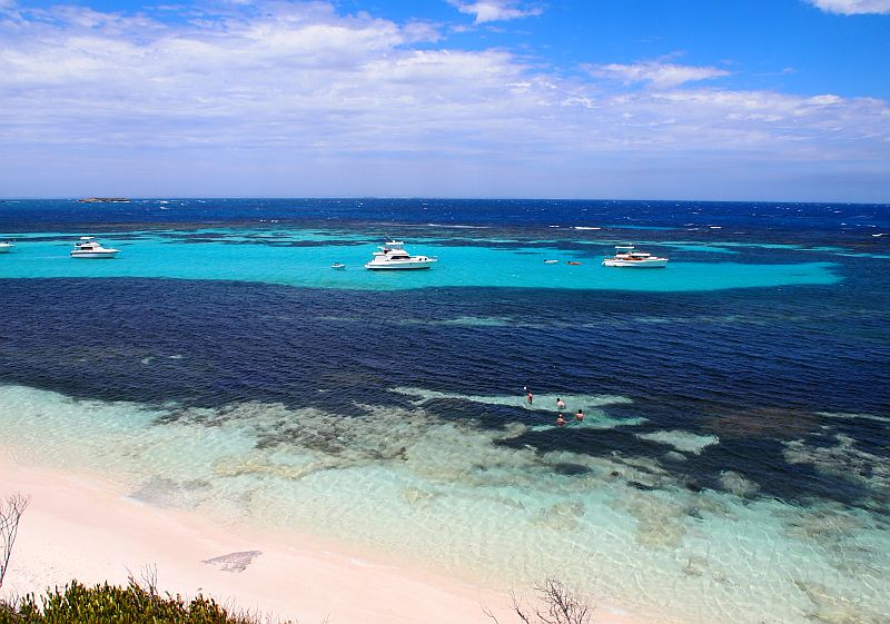 Rottnestille eli paikallisittain Rottolle, pääsee lautalla Fremantlesta ja Perthistä. Suurin osa sadoista tuhansista saaren vuosittaisista vierailijoista, viettää siellä vain yhden päivän, kuten mekin. Rottnestilla on kuitenkin mahdollista myös yöpyä. Sieltä löytyy kenguruiden kanssa hengailun lisäksi nimittäin muitakin aktiviteetteja. Saarella voi snorklailla ja sukeltaa. Rannoilla on mahdollisuus nähdä hylkeitä ja merileijonia. Me näimme quokkien lisäksi ainoastaan yhden käärmeen. Onneksi istuimme tuolloin pyörän satulassa, emmekä pusikossa quokkien kanssa.