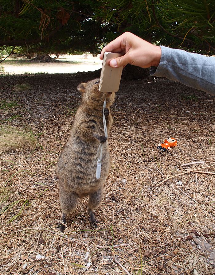 Syy miksi juuri Repsu ja sen lauma on painunut mieleemme on, että se oli ensimmäisiä kertoja, jolloin saimme viettää villieläinten kanssa aikaa kaikessa rauhassa ilman muita ihmisiä. Toinen merkittävä seikka oli, että nämä eläimet olivat hyvin rohkeita, eivätkä paenneet. Päinvastoin, ne osoittivat kiinnostusta meitä kohtaan. Quokkia tapaa tänä päivänä lähes yksinomaan Rottnestin saarella. Tuolla 18 kilometrin päässä mantereesta sijaitsevalla saarella, näillä pikkukenguruilla ei ole vieras- eikä kotoperäisiä saalistajia. Rottnest on myös lähes autovapaata aluetta ja siellä pääsee liikkumaan käytännössä vain turistibussilla tai polkupyörällä. Me vuokrasimme fillarit saavuttuamme saarelle lautalla.