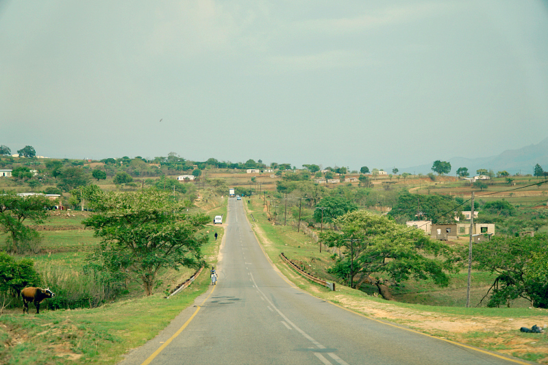 Tie kulki muutamien pienempien kylien läpi. Ajaessamme jonkin hieman suuremman kylän läpi sää oli muuttunut aamuisesta aurinkoisesta hyvin synkäksi ja edessä oli vuoristo. Vaikutti siltä, että vastassamme olisi melkoinen myräkkä. Meiltä oli tainnut jäädä lukematta Ulkoasiainministeriön matkustustiedote. Siellä lukee Swazimaan kohdalla: Kesäaikana (marras-tammikuu) sateet voivat olla rankkoja.