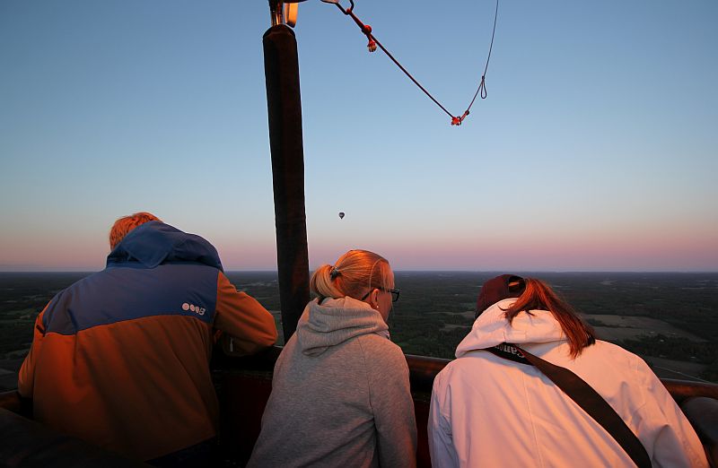 Pallo kohosi maasta nopeammin kuin olin kuvitellut, mutta kyyti oli todella tasaista. Uskomattominta oli, ettei missään vaiheessa tullut korkeanpaikankammoa, vaikka olenkin aikuisiällä sellaisesta alkanut jonkin verran kärsimään. Hetkessä olimme jo 500 metrin korkeudessa.